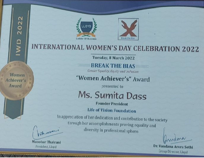 Founder & President of Life of Vision Foundation India: Presently organizing programs for women empowerment, Health for