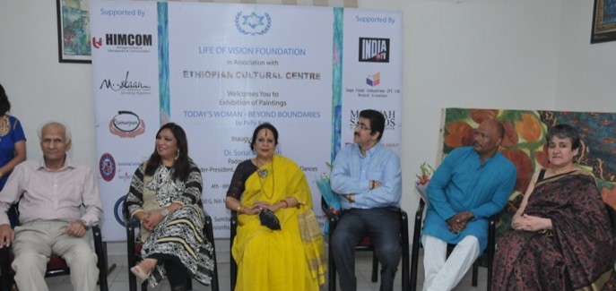 Life of Vision Foundation on 4th SeSeptember 4TH TO 6TH 2015 at Ethiopian Cultural Centreptember, organized an exquisite Art Exhibition of Art & Creativity titled “TODAY’S WOMAN- BEYOND BOUNDARIES promoting artist from Assam Polly Kaur from September 4TH TO 6TH 2015 at Ethiopian Cultural Centre. It was inaugurated by the eminent Indian classical dancer Dr. Sonal Mansingh ji, Padam Vibhushan. Founder-President, Centre for Indian Classical Dances.